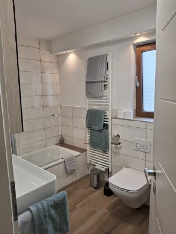 Im Bad befindet sich die Waschmaschine, welche gegen eine Nutzunggebühr von 15 € pro Waschgang (Ablesung am integrierten Zähler, digital) benutz werden kann.